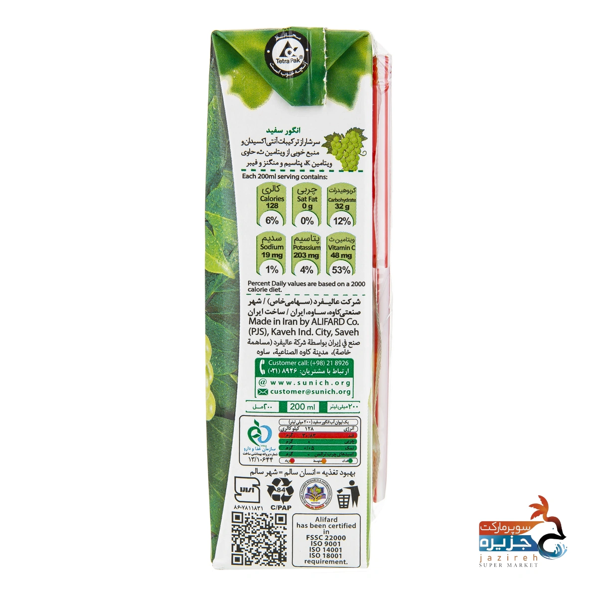 آبمیوه انگور سفید 200 میلیلیتری سنایچ
