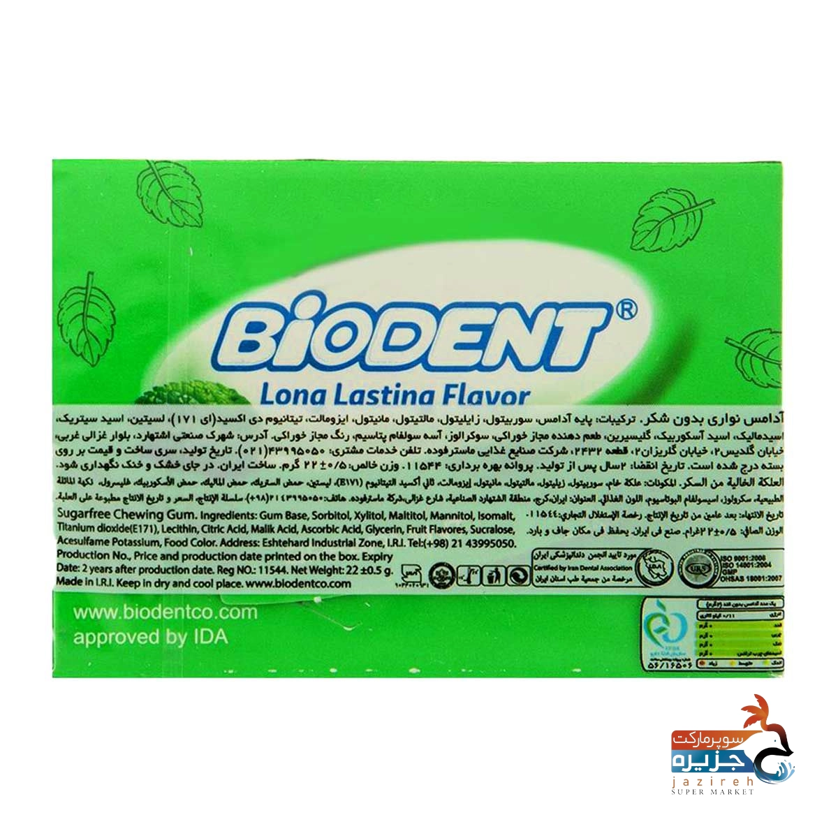 آدامس با طعم نعنا بدون شکر بایودنت 12 عددی