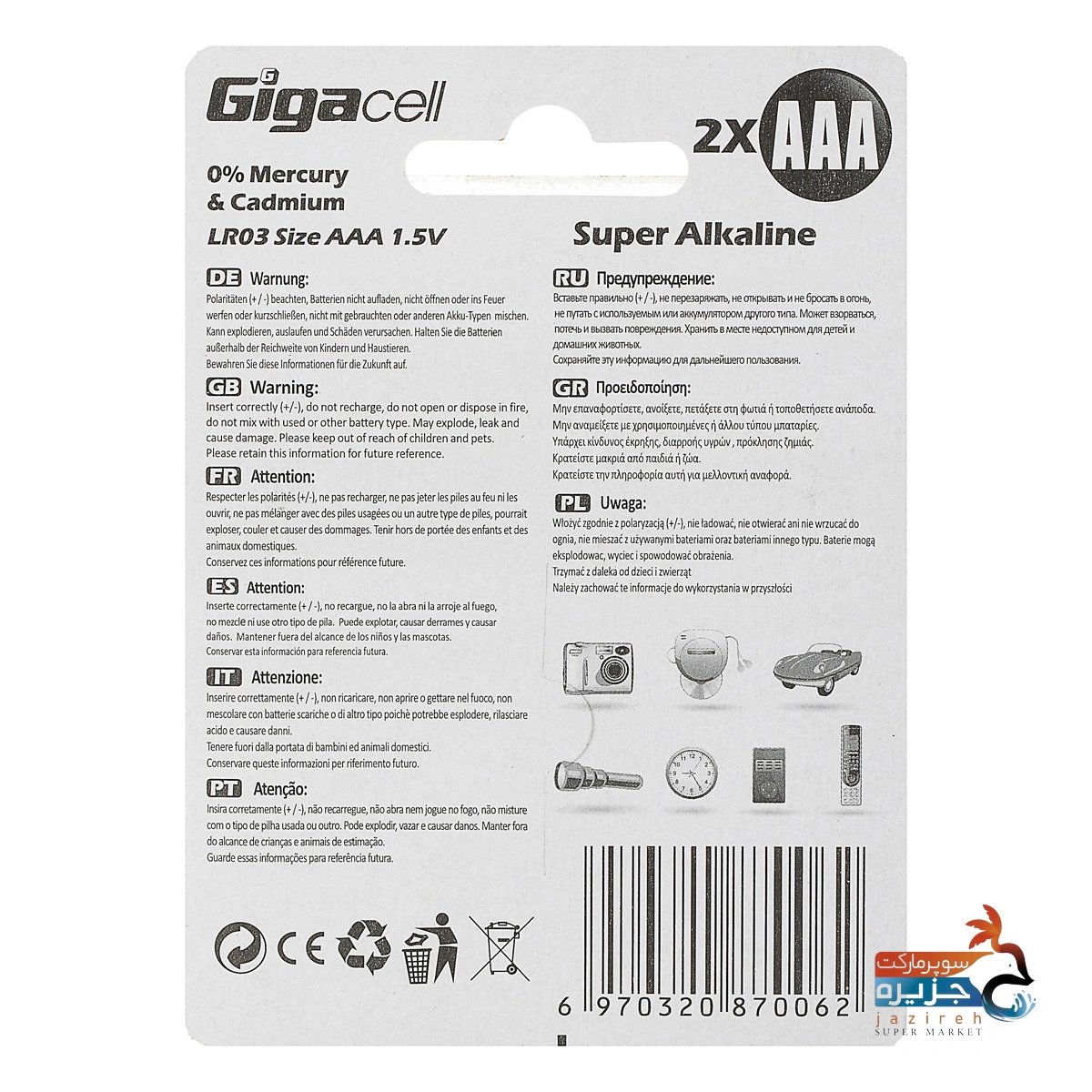 باتری نیم قلمی سوپر آلکالاین 1.5 ولتی 2 عددی گیگاسل