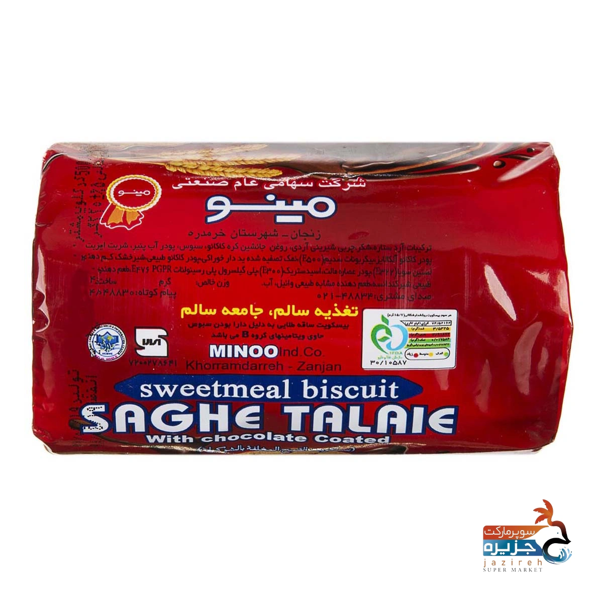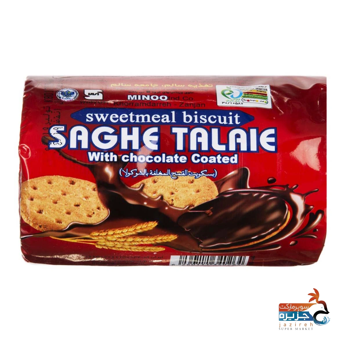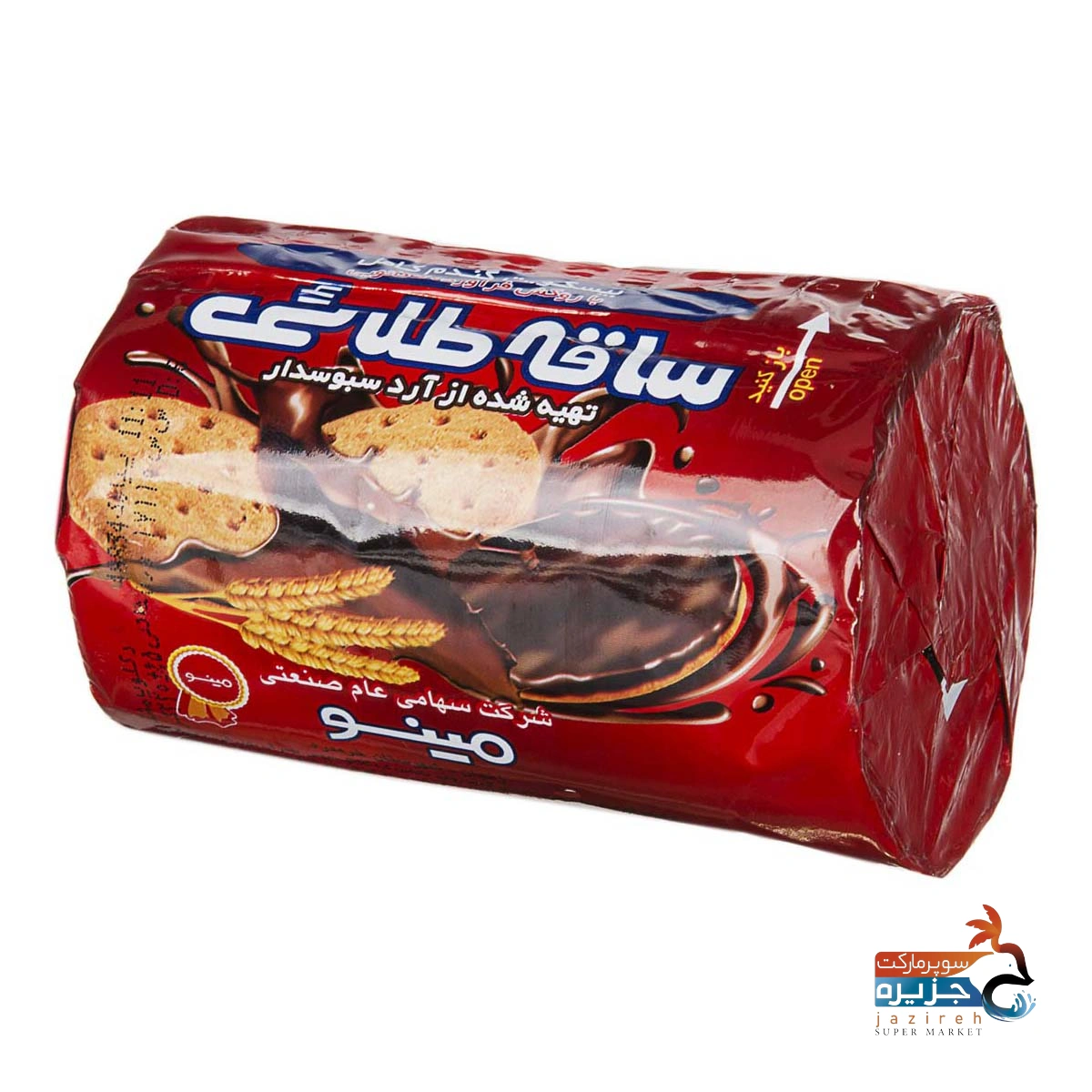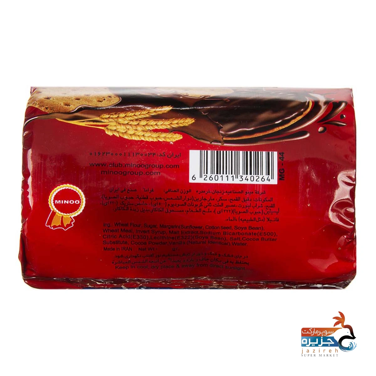 بیسکویت گندم کامل با روکش فراورده کاکائویی ساقه طلایی 220 گرمی مینو