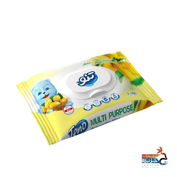 دستمال مرطوب کودک تنو معطر لیمو 60 عددی