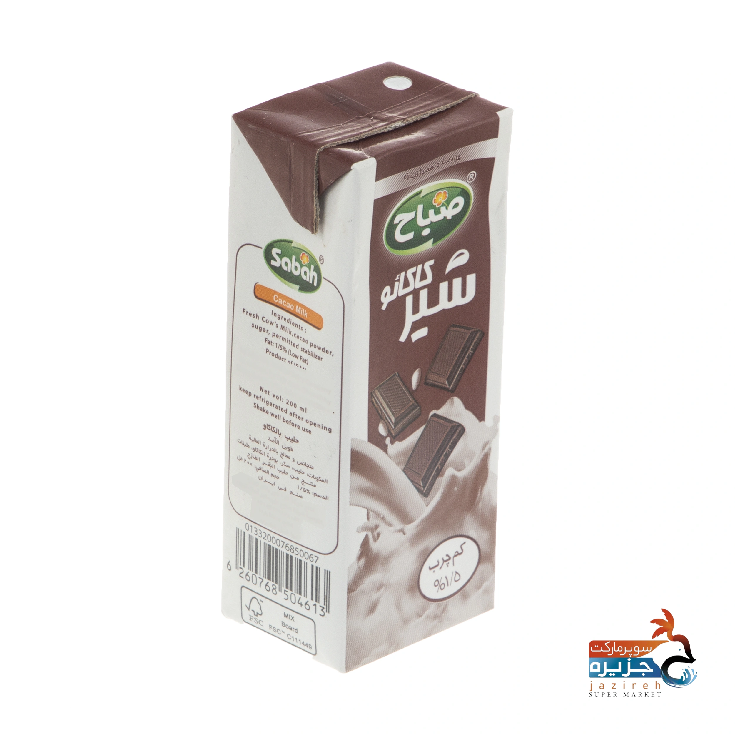 شیر کاکائو کم چرب صباح 200 میلی لیتر