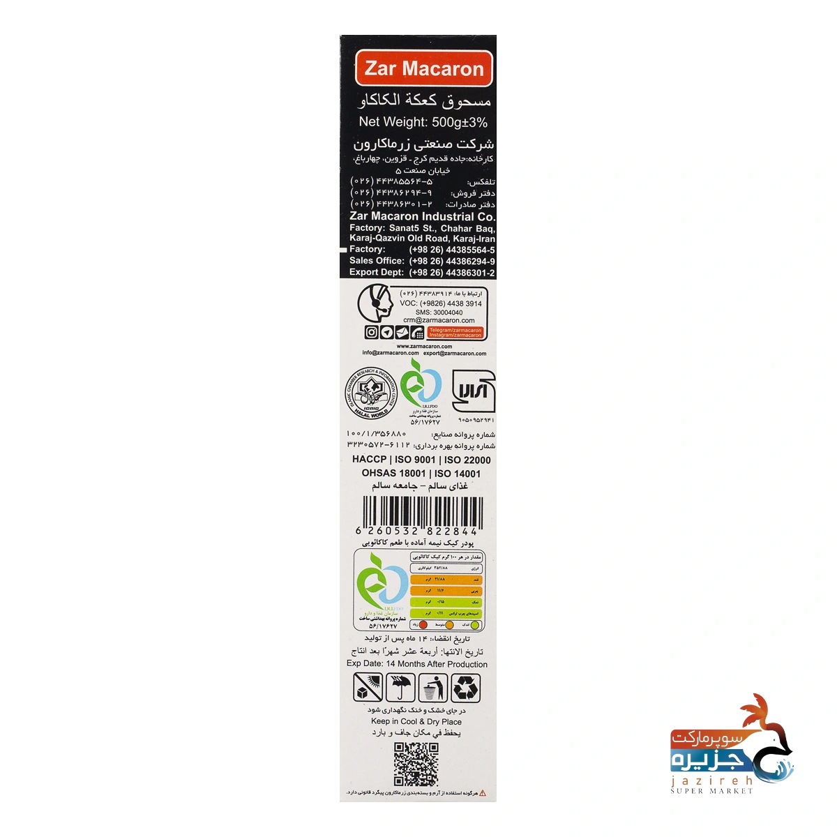 پودر کیک کاکائویی 500 گرمی زرماکارون