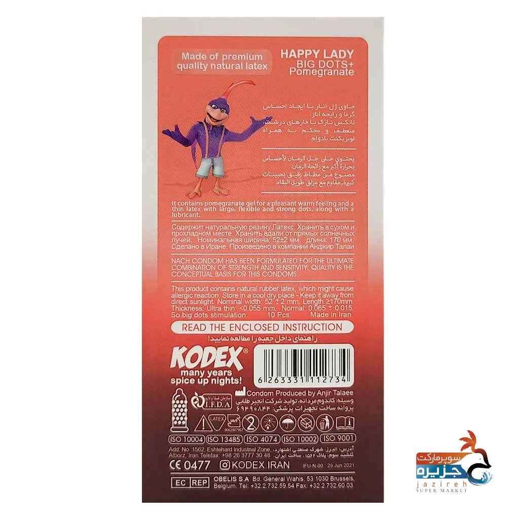 کاندوم خاردار انار ناچ کدکس هپی لیدی بسته 10 عددی